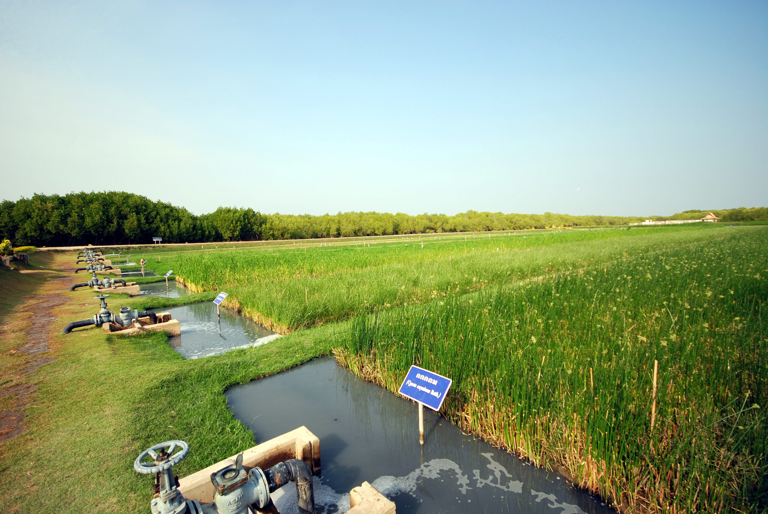 ระบบที่ใช้พืชและหญ้ากรองน้ำเสีย ได้แก่ หญ้าสตาร์ หญ้าคาลล่า หญ้าโดสครอส และพืชอื่น ๆ เช่น ธูปฤาษี กกกลม หญ้าแฝก พุทธรักษา เป็นตัวกรอง โดยให้น้ำเสียไหลเข้าแปลงพืชที่ระดับความสูง 30 ซม.จากผิวดิน ใช้เวลากักขังน้ำเสียไว้ 5 วัน และปล่อยทิ้งไว้ให้แห้ง 2 วัน เพื่อให้จุลินทรีย์ทำหน้าที่ย่อยสลายสิ่งสกปรกที่มากับน้ำเสียเปลี่ยนไปเป็นธาตุอาหารแกพืช ส่วนในช่วงที่ปล่อยแปลงแห้งเป็นการเพิ่มออกซิเจนในช่องว่างของดินเพื่อเตรียมพร้อมสำหรับการรับน้ำเสียรอบถัดไป และต้องมีการตัดหญ้ามีอายุครบ 45 วัน ส่วนพืชอื่นๆ 60 วัน ยกเว้นธูปฤาษี ที่ระยะเวลา 90 วัน เพื่อเป็นการเพิ่มประสิทธิภาพน้ำการบำบัดน้ำเสีย