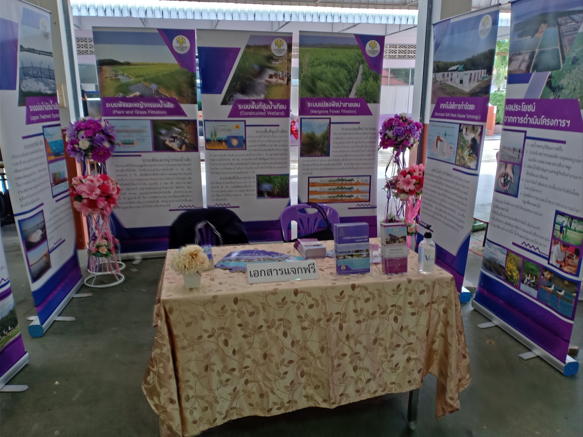 โครงการศึกษาวิจัยและพัฒนาสิ่งแวดล้อมแหลมผักเบี้ยอันเนื่องมาจากพระราชดำริ จังหวัดเพชรบุรี มีการดำเนินงานประชาสัมพันธ์และส่งเสริมเผยแพร่องค์ความรู้เทคโนโลยีการกำจัดขยะและน้ำเสียตามแนวพระราชดำริสู่สาธารณชน ผ่านรูปแบบการจัดนิทรรศการตามหน่วยงานทั้งในส่วนของภาครัฐ รัฐวิสาหกิจ สถาบันการศึกษาและภาคเอกชนทุกภูมิภาคของประเทศ