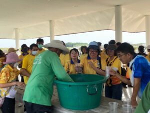 วันที่ 16 กุมภาพันธ์ พ.ศ. 2567 คณะวิทยาศาสตร์ มหาวิทยาลัยรามคำแหง ได้นำผู้เข้าร่วมโครงการสัมมนา เรื่อง แนวทางการพัฒนาการทำงานเป็นทีมของบุคลาคณะวิทยาศาสตร์ เข้าศึกษาดูงานจำนวน 100 คน ซึ่งทางโครงการฯ ได้ให้ความรู้เกี่ยวกับการบำบัดน้ำเสียและการกำจัดขยะชุมชน โดยใช้หลักของธรรมชาติช่วยธรรมชาติตามแนวพระราชดำริ โดยรับฟังการบรรยายจากเจ้าหน้าที่ประชาสัมพันธ์/นักวิชาการสิ่งแวดล้อม รับชมวีดิทัศน์ในห้องประชุม นั่งรถรางชมพื้นที่การดำเนินงาน ศึกษาเส้นทางธรรมชาติป่าชายเลนเส้นทาง “มัจฉาบาทา” ซึ่งมีระยะทางเดินไป – กลับประมาณ 1,800 เมตร และทางคณะวิทยาศาสตร์ มหาลัยรามคำแหงได้ร่วมปล่อยปลานิลลงในระบบบ่อบำบัดน้ำเสีย เพื่อควบคุมปริมาณแพลงก์ตอนในระบบบ่อบำบัดน้ำเสีย