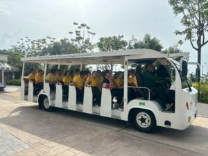 ซึ่งทางโครงการฯ ได้ให้ความรู้เกี่ยวกับการบำบัดน้ำเสียและการกำจัดขยะชุมชน โดยใช้หลักของธรรมชาติช่วยธรรมชาติตามแนวพระราชดำริ โดยรับฟังการบรรยายจากนักวิชาการสิ่งแวดล้อม รับชมวีดิทัศน์ในห้องประชุม นั่งรถรางชมพื้นที่การดำเนินงานของโครงการ พร้อมศึกษาระบบนิเวศป่าชายเลนธรรมชาติเส้นทาง “มัจฉาบาทา”