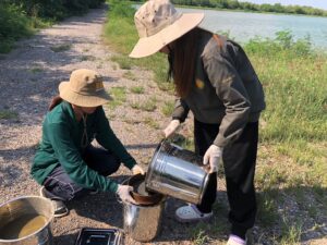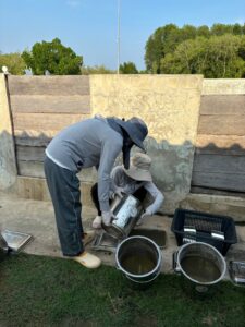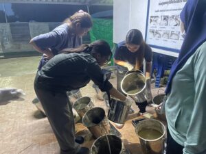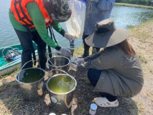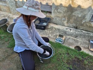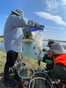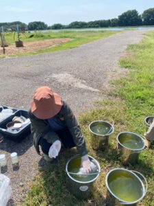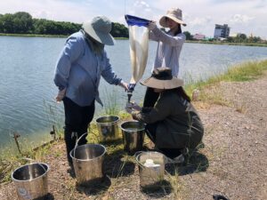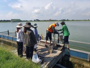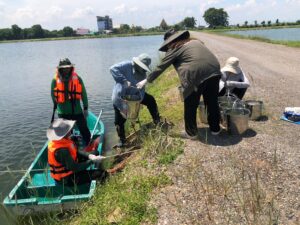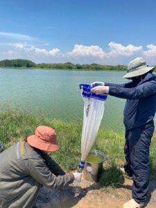 เมื่อวันที่ 4-6 ตุลาคม พ.ศ. 2567 นักวิชาการสิ่งแวดล้อม เจ้าหน้าที่ผู้ช่วยนักวิจัย โครงการพระราชดำริฯแหลมผักเบี้ย ร่วมกับคณะสิ่งแวดล้อม มหาวิทยาลัยเกษตรศาสตร์ (นิสิตระดับปริญญาตรี) ได้ดำเนินการเก็บตัวอย่างสิ่งแวดล้อม (น้ำ ตะกอน และแพลงก์ตอน) ในระบบบำบัดน้ำเสียชุมชนแบบบ่อผึ่งกระจายตัวจุดเก็บเผื่อเป็นตัวแทนทั้ง 5 บ่อตามหน้าที่ของแต่ละบ่อ ในงานวิจัยเรื่อง การปนเปื้อนไมโครพลาสติกในระบบบำบัดน้ำเสียชุมชนแบบบ่อผึ่งของเทศบาลเมืองเพชรบุรี ภายใต้การควบคุมของ ศ.เกียรติคุณ ดร.เกษม จันทร์แก้ว ผศ.ดร.อรอนงค์ ผิวนิล ผศ.ดร.ธนิศร์ ปัทมพิฑูร และผศ.ดร.วัชรพงษ์ วาระรัมย์ อาจารย์ที่ปรึกษา และดร.จุลบุตร จันทร์สูรย์ หัวหน้าฝ่ายวิจัยโครงการฯ