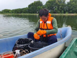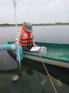 โครงการศึกษาวิจัยและพัฒนาสิ่งแวดล้อมแหลมผักเบี้ยอันเนื่องมาจากพระราชดำริ ร่วมกับคณะสิ่งแวดล้อม มหาวิทยาลัยเกษตรศาสตร์ ดำเนินการศึกษาวิจัยอิทธิพลของความลึกต่อการย่อยสลายทางชีวภาพแบบใช้ออกซิเจนในระบบบำบัดน้ำเสียชุมชนแบบบ่อผึ่ง ได้ทำการเก็บตัวอย่างน้ำในระบบบ่อบำบัดน้ำเสียของโครงการฯ (ตัวแทนฤดูฝน) ตรวจวัดคุณภาพน้ำในภาคสนามและวิเคราะห์คุณภาพน้ำในห้องปฏิบัติการ โดยนักวิชาการสิ่งแวดล้อมของโครงการฯ นักวิจัยนิสิตปริญญาโท เจ้าหน้าที่ภาคสนาม และนักศึกษาฝึกงาน ระหว่างวันที่ 16-19 พฤษภาคม พ.ศ.2567 ภายใต้การควบคุม ผศ.ดร.ธนิศร์ ปัทมพิฑูร อาจารย์ที่ปรึกษางานวิจัย และ ดร.จุลบุตร จันทร์สูรย์ หัวหน้าฝ่ายวิจัยโครงการฯ