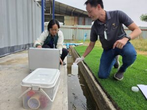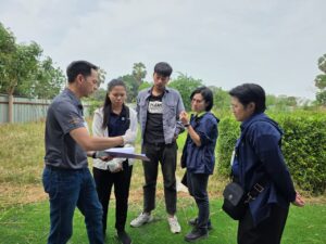 วันที่ 21 มีนาคม พ.ศ. 2568 เวลา 09.00 น. นักวิชาการสิ่งแวดล้อมโครงการศึกษาวิจัยและพัฒนาสิ่งแวดล้อมแหลมผักเบี้ยอันเนื่องมาจากพระราชดำริ ร่วมกับคณาจารย์คณะสิ่งแวดล้อม มหาวิทยาลัยเกษตรศาสตร์ ได้ให้บริการวิชาการ เรื่อง การจัดการคุณภาพน้ำทิ้งจากระบบบำบัดน้ำเสียโรงงานอุตสาหกรรมด้วยระบบบึงประดิษฐ์ ณ บริษัท พีรพัฒน์ เทคโนโลยี จำกัด (มหาชน) อำเภอเขาย้อย จังหวัดเพชรบุรี โดยโครงการฯ ได้ประชุมหารือร่วมกับเจ้าหน้าที่ที่เกี่ยวข้องถึงสภาพปัจจุบันของระบบ และสภาพปัญหาของระบบบึงประดิษฐ์ พร้อมทั้งทำการตรวจวัดคุณภาพน้ำภาคสนามเบื้องต้น เพื่อเป็นข้อมูลประกอบการให้ข้อเสนอแนะทางการจัดการคุณภาพน้ำทิ้งจากระบบบำบัดน้ำเสียแบบบึงประดิษฐ์ และการดูแลรักษาระบบอย่างถูกวิธี