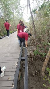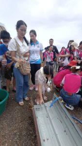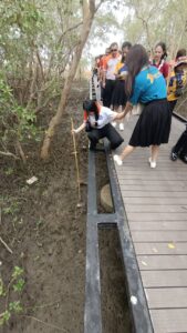 วันที่ 8 ตุลาคม พ.ศ. 2566 มหาวิทยาลัยปทุมธานี ได้นำคณะอาจารย์ เจ้าหน้าที่และบุคลากร เข้าศึกษาดูงาน จำนวน 150 คน ซึ่งทางโครงการฯ ได้ให้ความรู้เกี่ยวกับการบำบัดน้ำเสียและการกำจัดขยะชุมชน โดยใช้หลักของธรรมชาติช่วยธรรมชาติตามแนวพระราชดำริ โดยรับฟังการบรรยายจากเจ้าหน้าที่/นักวิชาการสิ่งแวดล้อม รับชมวีดิทัศน์ในห้องประชุม นั่งรถรางชมพื้นที่การดำเนินงานของโครงการฯ พร้อมกันนี้ทางมหาวิทยาลัยปทุมธานีได้ทำกิจกรรม CSR ร่วมกับโครงการฯ โดยการเก็บขยะตามเส้นทางศึกษาระบบนิเวศป่าชายเลน ปล่อยปลานิลซึ่งเป็นปลากินพืชลงในระบบบ่อบำบัดบัดน้ำเสียเพื่อควบคุมปริมาณแพลงก์ตอนพืช และได้บริจาคร่ม ถุงขยะสีดำ และ