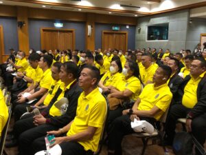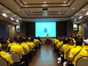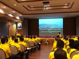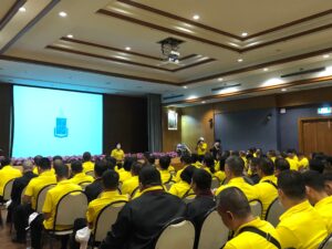 วันที่ 11 มีนาคม พ.ศ. 2567 วิทยาลัยการตำรวจ สำนักงานตำรวจแห่งชาติ ได้นำผู้เข้าร่วมอบรมหลักสูตรผู้กำกับการ รุ่นที่ 144 เข้าศึกษาดูงาน จำนวน 172 คน ซึ่งทางโครงการฯ ได้ให้ความรู้เกี่ยวกับการบำบัดน้ำเสียและการกำจัดขยะชุมชน โดยใช้หลักของธรรมชาติช่วยธรรมชาติตามแนวพระราชดำริ โดยรับฟังการบรรยายจากเจ้าหน้าที่ประชาสัมพันธ์/นักวิชาการสิ่งแวดล้อม รับชมวีดิทัศน์ในห้องประชุม นั่งรถรางชมพื้นที่การดำเนินงานของโครงการ ศึกษาเส้นทางธรรมชาติป่าชายเลนเส้นทาง “มัจฉาบาทา” และพร้อมกันนี้ทางวิทยาลัยการตำรวจได้ทำกิจกรรมเพื่อสังคม (CSR) ร่วมกับโครงการฯ โดยการปล่อยปลากินพืชลงในระบบบ่อบัดน้ำเสียเพื่อควบคุมปริมาณแพลงก์ตอน