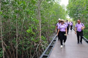 วันที่ 16 พฤษภาคม พ.ศ. 2567 ศูนย์ประสานงานโครงการอันเนื่องมาจากพระราชดำริและความมั่นคง กองบัญชาการกองทัพไทย ได้นำผู้เข้าร่วมฝึกอบรมหลักสูตรขับเคลื่อนเครือข่ายโครงการอันเนื่องมาจากพระราชดำริ และหลักปรัชญาของเศรษฐกิจพอเพียง รุ่นที่ 2 เข้าศึกษาดูงาน จำนวน 36 คน ซึ่งทางโครงการฯ ได้ให้ความรู้เกี่ยวกับการบำบัดน้ำเสียและการกำจัดขยะชุมชน โดยใช้หลักของธรรมชาติช่วยธรรมชาติตามแนวพระราชดำริ โดยรับฟังการบรรยายจาก นักวิชาการสิ่งแวดล้อม รับชมวีดิทัศน์ในห้องประชุม นั่งรถรางชมพื้นที่การดำเนินงานของโครงการ พร้อมศึกษาเส้นทางธรรมชาติป่าชายเลนเส้นทาง “มัจฉาบาทา”