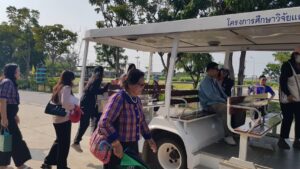 วันที่ 20 ตุลาคม พ.ศ. 2566 สำนักงานวัฒนธรรมจังหวัดกาญจนบุรี ได้นำผู้เข้าโครงการศึกษาดูงาน แลกเปลี่ยนเรียนรู้วิถีชีวิต ชุมชนชาติพันธุ์กะเหรี่ยง จังหวัดกาญจนบุรี เข้าศึกษาดูงาน จำนวน 30 คน ซึ่งทางโครงการฯ ได้ให้ความรู้เกี่ยวกับการบำบัดน้ำเสียและการกำจัดขยะชุมชน โดยใช้หลักของธรรมชาติช่วยธรรมชาติตามแนวพระราชดำริ โดยรับฟังการบรรยายจากนักวิชาการสิ่งแวดล้อม รับชมวีดิทัศน์ในห้องประชุม นั่งรถรางชมพื้นที่การดำเนินงานของโครงการฯ