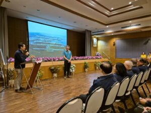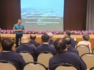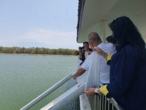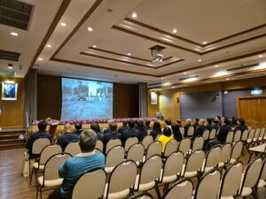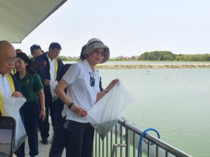 วันที่ 27 มีนาคม พ.ศ. 2567 สำนักงานศาลรัฐธรรมนูญ นำโดยตุลาการศาลรัฐธรรมนูญ ได้นำผู้เข้าร่วมอบรม หลักสูตร “หลักนิติธรรมเพื่อประชาธิปไตย” (นธป.) รุ่นที่ 12 เข้าศึกษาดูงานด้านการบำบัดน้ำเสียชุมชนและการกำจัดขยะ โดยใช้เทคโนโลยีธรรมชาติช่วยธรรมชาติ จำนวน 33 คน ซึ่งทางโครงการฯ ให้การต้อนรับและบรรยายสรุปการดำเนินงานของโครงการฯ โดย รศ.ดร.สุรัตน์ บัวเลิศ นักวิจัยเชี่ยวชาญด้านอุตุนิยมวิทยาใกล้ผิวดิน และอาจารย์ประจำภาควิชาวิทยาศาสตร์สิ่งแวดล้อม มหาวิทยาลัยเกษตรศาสตร์ พร้อมกันนี้ทางสำนักงานศาลรัฐธรรมนูญได้ร่วมปล่อยปลานิลพันธุ์จิตรลดาลงในระบบบ่อบำบัดน้ำเสียเพื่อควบคุมปริมาณแพลงก์ตอน และได้มอบเงินสนับสนุนการดำเนินงานของโครงการฯ
