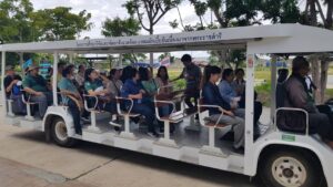 วันที่ 30 สิงหาคม พ.ศ. 2566 โครงการศึกษาวิจัยและพัฒนาสิ่งแวดล้อมแหลมผักเบี้ยอันเนื่องมาจากพระราชดำริ ได้ต้อนรับคณะศึกษาดูงานจากสำนักวิจัยและพัฒนาการป่าไม้ กรมป่าไม้ กระทรวงทรัพยากรธรรมชาติและสิ่งแวดล้อม ได้นำผู้เข้าร่วมอบรมเชิงปฏิบัติการหลักสูตรการเสริมสร้างและพัฒนาศักยภาพงานวิจัยด้านป่าไม้ เข้าร่วมศึกษาดูงาน จำนวน 54 คน ซึ่งทางโครงการฯ ได้ให้ความรู้เกี่ยวกับการบำบัดน้ำเสียและการกำจัดขยะชุมชน โดยใช้หลักของธรรมชาติช่วยธรรมชาติ ตามแนวพระราชดำริ พร้อมกันนี้ได้นั่งรถชมพื้นที่การดำเนินงานของโครงการฯ พร้อมศึกษาระบบนิเวศป่าชายเลนของโครงการฯ