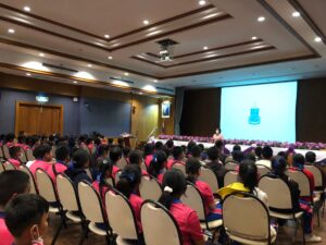 วันที่ 18 มิถุนายน พ.ศ. 2567 องค์การบริหารส่วนจังหวัดสุพรรณบุรี ได้นำนักเรียนในโครงการเปิดโลกวิทยาศาสตร์ เทคโนโลยี พลังงานและสิ่งแวดล้อม รุ่นที่ 5 เข้าศึกษาดูงาน จำนวน 200 คน โดยกลุ่มเป้าหมายประกอบด้วยนักเรียนระดับชั้นประถมศึกษาชั้นปีที่ 3 และ 4 ซึ่งทางโครงการฯ ได้ให้ความรู้เกี่ยวกับการบำบัดน้ำเสียและการกำจัดขยะชุมชน โดยใช้หลักของธรรมชาติช่วยธรรมชาติตามแนวพระราชดำริ โดยรับฟังการบรรยายจากเจ้าหน้าที่ประชาสัมพันธ์/นักวิชาการสิ่งแวดล้อม รับชมวีดิทัศน์ในห้องประชุม นั่งรถรางชมพื้นที่การดำเนินงานของโครงการ พร้อมศึกษาระบบนิเวศป่าชายเลนธรรมชาติเส้นทาง “มัจฉาบาทา”