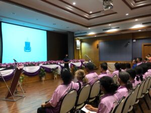 วันที่ 7 มิถุนายน พ.ศ. 2567 องค์การบริหารส่วนตำบลหนองรี อำเภอเมืองชลบุรี จังหวัดชลบุรี ได้นำผู้เข้าร่วมโครงการฝึกอบรมสัมมนาและศึกษาดูงานเพื่อพัฒนาชุมชน และกลุ่มองค์การต่างๆ ประจำปีงบประมาณ พ.ศ. 2567 โดยกลุ่มเป้าหมายประกอบด้วย คณะผู้บริหาร ผู้นำชุมชน กลุ่มสตรี กลุ่มองค์กรต่างๆ และเจ้าหน้าที่ เข้าศึกษาดูงาน จำนวน 148 คน ซึ่งทางโครงการฯ ได้ให้ความรู้เกี่ยวกับการบำบัดน้ำเสียและการกำจัดขยะชุมชน โดยใช้หลักของธรรมชาติช่วยธรรมชาติตามแนวพระราชดำริ โดยรับฟังการบรรยายจากเจ้าหน้าที่ประชาสัมพันธ์/นักวิชาการสิ่งแวดล้อม รับชมวีดิทัศน์ในห้องประชุม นั่งรถรางชมพื้นที่การดำเนินงานของโครงการ พร้อมศึกษาเส้นทางธรรมชาติป่าชายเลนเส้นทาง “มัจฉาบาทา”