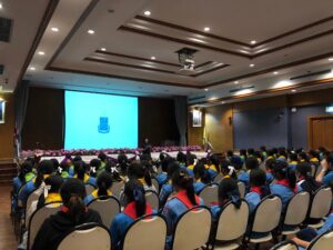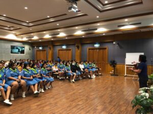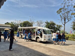 วันที่ 17 มกราคม พ.ศ. 2568 โรงเรียนบ้านลาดวิทยา จังหวัดเพชรบุรี ได้นำนักเรียนที่เข้าร่วมกิจกรรมค่ายพักแรมยุวกาชาด โดยกลุ่มเป้าหมายเป็นนักเรียนระดับชั้นมัธยมศึกษาปีที่ 1-3 พร้อมคณะครู เข้าศึกษาดูงาน จำนวน 107 คน ซึ่งทางโครงการฯ ได้ให้ความรู้เกี่ยวกับการบำบัดน้ำเสียและการกำจัดขยะชุมชน โดยใช้หลักของธรรมชาติช่วยธรรมชาติตามแนวพระราชดำริ โดยรับฟังการบรรยายจากเจ้าหน้าที่ประชาสัมพันธ์/นักวิชาการสิ่งแวดล้อม รับชมวีดิทัศน์ในห้องประชุม นั่งรถรางชมพื้นที่การดำเนินงานของโครงการ พร้อมศึกษาระบบนิเวศป่าชายเลนธรรมชาติเส้นทาง “มัจฉาบาทา”