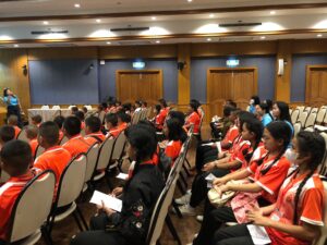 วันที่ 11 มีนาคม พ.ศ. 2567 โรงเรียนบ้านเขาแหลม อำเภอโพธาราม จังหวัดราชบุรี ได้นำนักเรียนระดับชั้นอนุบาล – ประถมศึกษาปีที่ 6 พร้อมคณะครู เข้าศึกษาดูงาน จำนวน 50 คน ซึ่งทางโครงการฯ ได้ให้ความรู้เกี่ยวกับการบำบัดน้ำเสียและการกำจัดขยะชุมชน โดยใช้หลักของธรรมชาติช่วยธรรมชาติตามแนวพระราชดำริ โดยรับฟังการบรรยายจากเจ้าหน้าที่ประชาสัมพันธ์/นักวิชาการสิ่งแวดล้อม รับชมวีดิทัศน์ในห้องประชุม นั่งรถรางชมพื้นที่การดำเนินงานของโครงการพร้อมศึกษาเส้นทางธรรมชาติป่าชายเลนเส้นทาง “มัจฉาบาทา”
