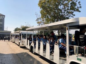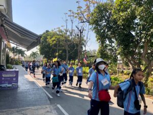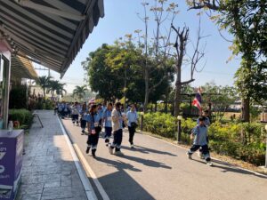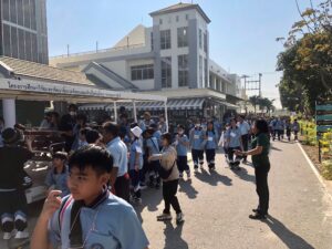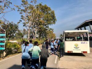 วันที่ 8 มกราคม พ.ศ. 2568 โรงเรียนพระแม่สกลสงเคราะห์ จังหวัดนนทบุรี ได้นำนักเรียนในค่าย Math & Science โดยกลุ่มเป้าหมายเป็นนักเรียนระดับชั้นประถมศึกษาปีที่ 4-6 เข้าศึกษาดูงานพร้อมคณะครู จำนวน 162 คน ซึ่งทางโครงการฯ ได้ให้ความรู้เกี่ยวกับการบำบัดน้ำเสียและการกำจัดขยะชุมชน โดยใช้หลักของธรรมชาติช่วยธรรมชาติตามแนวพระราชดำริ โดยรับฟังการบรรยายจากเจ้าหน้าที่ประชาสัมพันธ์/นักวิชาการสิ่งแวดล้อม รับชมวีดิทัศน์ในห้องประชุม นั่งรถรางชมพื้นที่การดำเนินงานของโครงการ พร้อมศึกษาระบบนิเวศป่าชายเลนธรรมชาติ เส้นทาง “มัจฉาบาทา”
