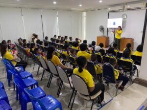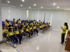 วันที่ 18 มีนาคม พ.ศ. 2567 โรงเรียนวัดช่องลม (ธรรมโชติ) อำเภอเมืองสมุทรสงคราม จังหวัดสมุทรสงคราม ได้นำนักเรียนระดับชั้นอนุบาล – ประถมศึกษาปีที่ 6 พร้อมคณะครู เข้าศึกษาดูงาน จำนวน 133 คน ซึ่งทางโครงการฯ ได้ให้ความรู้เกี่ยวกับการบำบัดน้ำเสียและการกำจัดขยะชุมชน โดยใช้หลักของธรรมชาติช่วยธรรมชาติตามแนวพระราชดำริ โดยรับฟังการบรรยายจากเจ้าหน้าที่ประชาสัมพันธ์/นักวิชาการสิ่งแวดล้อม รับชมวีดิทัศน์ในห้องประชุม นั่งรถรางชมพื้นที่การดำเนินงานของโครงการพร้อมศึกษาเส้นทางธรรมชาติป่าชายเลนเส้นทาง “มัจฉาบาทา”