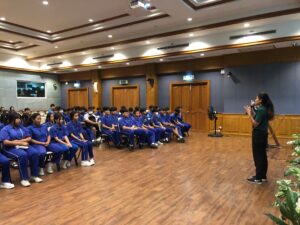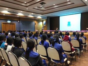 วันที่ 19 มีนาคม พ.ศ. 2567 โรงเรียนวัดท่าพูด (นครผลประชานุกูล) อำเภอสามพราน จังหวัดนครปฐม ได้นำนักเรียนระดับมัธยมศึกษาปีที่ 3 และคณะครู เข้าศึกษาดูงาน จำนวน 131 คน ซึ่งทางโครงการฯ ได้ให้ความรู้เกี่ยวกับการบำบัดน้ำเสียและการกำจัดขยะชุมชน โดยใช้หลักของธรรมชาติช่วยธรรมชาติตามแนวพระราชดำริ โดยรับฟังการบรรยายจากเจ้าหน้าที่ประชาสัมพันธ์/นักวิชาการสิ่งแวดล้อม รับชมวีดิทัศน์ในห้องประชุม นั่งรถรางชมพื้นที่การดำเนินงานของโครงการพร้อมศึกษาเส้นทางธรรมชาติป่าชายเลนเส้นทาง “มัจฉาบาทา”