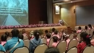 วันที่ 27 กันยายน พ.ศ. 2566 โรงเรียนวัดนันทวัน สังกัดสำนักงานเขตพื้นที่การศึกษาสุพรรณบุรี เขต 2 ได้นำนักเรียนระดับชั้นอนุบาล 2 ถึง ระดับชั้นมัธยมศึกษาปีที่ 6 ผู้ปกครองพร้อมคณะครู เข้าศึกษาดูงาน จำนวน 140 คน ซึ่งทางโครงการฯ ได้ให้ความรู้เกี่ยวกับการบำบัดน้ำเสียและการกำจัดขยะชุมชน โดยใช้หลักของธรรมชาติช่วยธรรมชาติตามแนวพระราชดำริ โดยรับฟังการบรรยายจากเจ้าหน้าที่/นักวิชาการสิ่งแวดล้อม รับชมวีดิทัศน์ในห้องประชุม นั่งรถรางชมพื้นที่การดำเนินงานของโครงการฯ พร้อมศึกษาระบบนิเวศป่าชายเลน