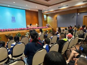 วันที่ 10 ตุลาคม พ.ศ. 2566 โรงเรียนวัดย่านซื่อ จังหวัดสุพรรณบุรี ได้นำนักเรียนระดับชั้นอนุบาล 2 – ประถมศึกษาปีที่ 6 ผู้ปกครองและคณะครู เข้าศึกษาดูงาน จำนวน 61 คน ซึ่งทางโครงการฯ ได้ให้ความรู้เกี่ยวกับการบำบัดน้ำเสียและการกำจัดขยะชุมชน โดยใช้หลักของธรรมชาติช่วยธรรมชาติตามแนวพระราชดำริ โดยรับฟังการบรรยายจากเจ้าหน้าที่/นักวิชาการสิ่งแวดล้อม รับชมวีดิทัศน์ในห้องประชุม นั่งรถรางชมพื้นที่การดำเนินงานของโครงการฯ พร้อมศึกษาระบบนิเวศป่าชายเลน