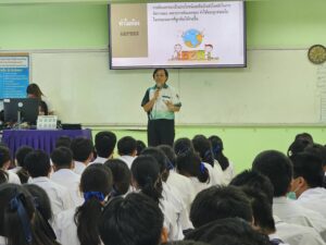 จัดกิจกรรมถ่ายทอดความรู้และส่งเสริมการคัดแยกขยะในโรงเรียน (Active learning) ให้กับกลุ่มเยาวชน นักเรียนชั้นมัธยมศึกษาปีที่ 4 จำนวน 122 คน ณ โรงเรียนสุคนธีรวิทย์ จังหวัดนครปฐม