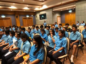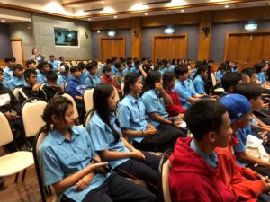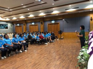 วันที่ 11 กันยายน พ.ศ. 2567 โรงเรียนอนุบาลวัดไชยชุมพลชนะสงคราม จังหวัดกาญจนบุรี ได้นำนักเรียนชั้นมัธยมศึกษาปีที่ 1-3 พร้อมคณะครู เข้าศึกษาดูงาน จำนวน 200 คน ซึ่งทางโครงการฯ ได้ให้ความรู้เกี่ยวกับการบำบัดน้ำเสียและการกำจัดขยะชุมชน โดยใช้หลักของธรรมชาติช่วยธรรมชาติตามแนวพระราชดำริ โดยรับฟังการบรรยายจากเจ้าหน้าที่ประชาสัมพันธ์/นักวิชาการสิ่งแวดล้อม รับชมวีดิทัศน์ในห้องประชุม นั่งรถรางชมพื้นที่การดำเนินงานของโครงการ พร้อมศึกษาระบบนิเวศป่าชายเลนธรรมชาติเส้นทาง “มัจฉาบาทา”