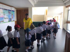 วันที่ 30 กรกฎาคม พ.ศ. 2567 โรงเรียนอนุบาลศึกษาปัญญา อำเภอเมือง จังหวัดเพชรบุรี ได้นำนักเรียนชั้นอนุบาล 1- 3 พร้อมคณะครู เข้าศึกษาดูงาน จำนวน 173 คน ซึ่งทางโครงการฯ ได้ให้ความรู้เกี่ยวกับการบำบัดน้ำเสียและการกำจัดขยะชุมชน โดยใช้หลักของธรรมชาติช่วยธรรมชาติตามแนวพระราชดำริ โดยรับฟังการบรรยายจากเจ้าหน้าที่ประชาสัมพันธ์/นักวิชาการสิ่งแวดล้อม รับชมวีดิทัศน์ในห้องประชุม นั่งรถรางชมพื้นที่การดำเนินงานของโครงการ พร้อมศึกษาระบบนิเวศป่าชายเลนธรรมชาติเส้นทาง “มัจฉาบาทา”