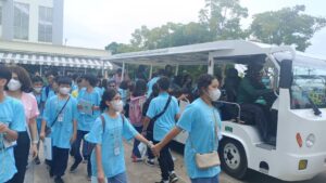 วันที่ 4 ตุลาคม พ.ศ. 2566 โรงเรียนเตรียมอุดมศึกษาน้อมเกล้า จังหวัดกรุงเทพมหานคร ได้นำนักเรียนระดับชั้นมัธยมศึกษาปีที่ 1-3 ในโครงการห้องเรียนพิเศษวิทยาศาสตร์ – คณิตศาสตร์ พร้อมคณะครูเข้าศึกษาดูงาน จำนวน 121 คน ซึ่งทางโครงการฯ ได้ให้ความรู้เกี่ยวกับการบำบัดน้ำเสียและการกำจัดขยะชุมชน โดยใช้หลักของธรรมชาติช่วยธรรมชาติตามแนวพระราชดำริ โดยรับฟังการบรรยายจากเจ้าหน้าที่/นักวิชาการสิ่งแวดล้อม รับชมวีดิทัศน์ในห้องประชุม นั่งรถรางชมพื้นที่การดำเนินงานของโครงการฯ พร้อมศึกษาระบบนิเวศป่าชายเลน
