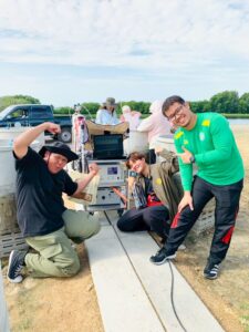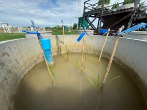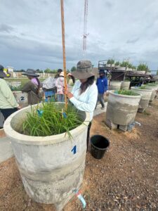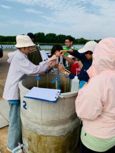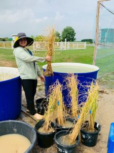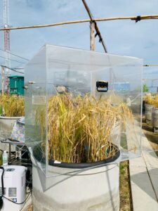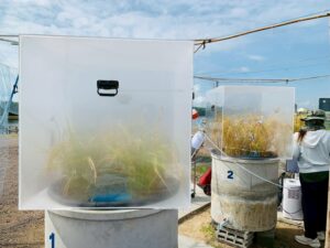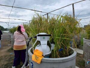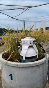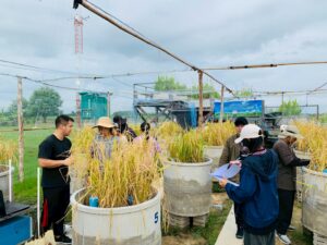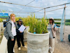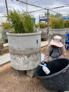 นักวิชาการสิ่งแวดล้อมและเจ้าหน้าที่ผู้ช่วยนักวิจัยโครงการศึกษาวิจัยและพัฒนาสิ่งแวดล้อมแหลมผักเบี้ยอันเนื่องมาจากพระราชดำริ ร่วมกับคณะสิ่งแวดล้อม มหาวิทยาลัยเกษตรศาสตร์ (ภายใต้ความร่วมมือระหว่างประเทศไทย-ญี่ปุ่น-อินโดนีเซีย) ได้ดำเนินการเก็บตัวอย่างทางสิ่งแวดล้อม โครงการวิจัยเรื่อง การจัดการชลประทานนาข้าวตามสภาพอากาศอย่างชาญฉลาด โดยใช้การตรวจสอบระยะไกลและเทคโนโลยีสารสนเทศและการสื่อสาร (ทดลองปลูกข้าวแบบ AWD) โดยดำเนินการตั้งแต่วันที่ 3 กรกฎาคม 2568 – 8 พฤศจิกายน 2568 รวมระยะเวลาเก็บตัวอย่างทั้งสิ้น 18 สัปดาห์ ประกอบด้วย คุณภาพน้ำในหน่วยทดลอง, การเจริญเติบโตของต้นข้าว, เก็บตัวอย่าง Gas โดยใช้ closed chamber และ soil flux, soil moisture, soil temperature, ตรวจวัดแสง และตัวอย่างดินในหน่วยทดลอง