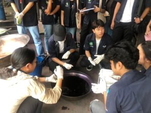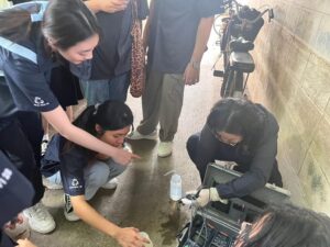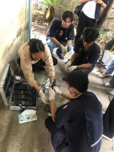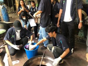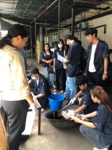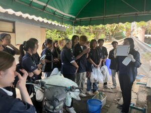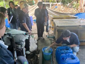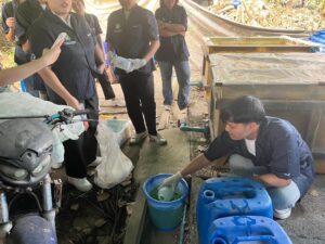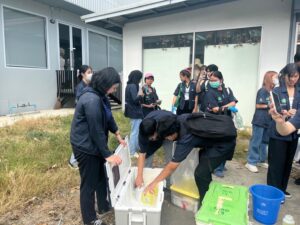 วันที่ 12 ธันวาคม พ.ศ. 2567 เวลา 13.00 น. นักวิชาการสิ่งแวดล้อมโครงการศึกษาวิจัยและพัฒนาสิ่งแวดล้อมแหลมผักเบี้ยอันเนื่องมาจากพระราชดำริ ร่วมกับคณาจารย์ภาควิชาวิทยาศาสตร์สิ่งแวดล้อม คณะสิ่งแวดล้อม มหาวิทยาลัยเกษตรศาสตร์ ทำการเก็บตัวอย่างน้ำเสียจากกระบวนการฟอกย้อมสีดอกไม้แห้ง และน้ำผิวดินบริเวณโรงงานแปรรูปดอกไม้แห้ง มูลนิธิโครงการหลวง สาขามหาวิทยาลัยเกษตรศาสตร์ บางเขน เพื่อวิเคราะห์คุณภาพน้ำและนำข้อมูลไปใช้ประกอบการวางแผนการปรับปรุงระบบบำบัดน้ำเสียจากกระบวนการแปรรูปดอกไม้แห้งต่อไป