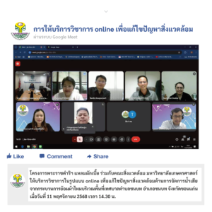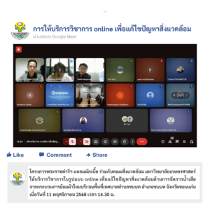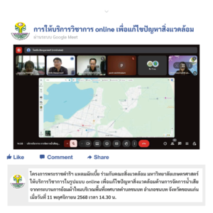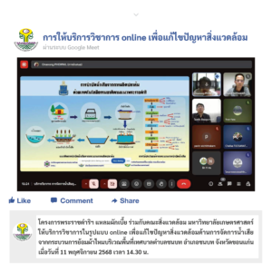 โครงการศึกษาวิจัยและพัฒนาสิ่งแวดล้อมแหลมผักเบี้ยอันเนื่องมาจากพระราชดำริ ให้บริการวิชาการเพื่อแก้ไขปัญหาสิ่งแวดล้อมในรูปแบบออนไลน์