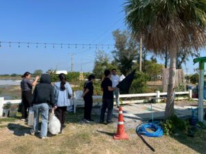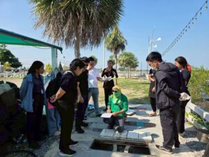 วันที่ 20 ธันวาคม 2568 เวลา 14.30 น. นักวิชาการสิ่งแวดล้อมโครงการศึกษาวิจัยและพัฒนาสิ่งแวดล้อมแหลมผักเบี้ยอันเนื่องมาจากพระราชดำริ ร่วมกับคณะสิ่งแวดล้อม มหาวิทยาลัยเกษตรศาสตร์ ให้บริการวิชาการเพื่อแก้ไขปัญหาสิ่งแวดล้อมด้านการจัดการน้ำเสียจากร้านอาหารบ้านปูเป็น 2 ตำบลแหลมผักเบี้ย อำเภอบ้านแหลม จังหวัดเพชรบุรี โดยได้ทำการตรวจวัดคุณภาพน้ำภาคสนาม และเก็บตัวอย่างน้ำไปวิเคราะห์ในห้องปฏิบัติการเพื่อหาสถานภาพของน้ำเสียและเป็นข้อมูลประกอบการปรับปรุงระบบบำบัดน้ำเสียเดิม พร้อมทั้งได้ให้ข้อเสนอแนะให้ร้านค้าทำการคัดแยกขยะ โดยนำขยะอินทรีย์และไขมันจากถังดักไขมันในร้านอาหารไปหมักด้วยเทคโนโลยีกล่องคอนกรีตกำจัดขยะของโครงการฯ