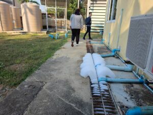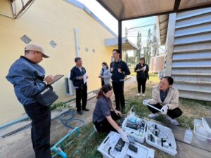 วันที่ 12 มกราคม พ.ศ. 2569 เวลา 08.30 น. นักวิชาการสิ่งแวดล้อมจากโครงการศึกษาวิจัยและพัฒนาสิ่งแวดล้อมแหลมผักเบี้ยอันเนื่องมาจากพระราชดำริ ร่วมกับคณะสิ่งแวดล้อม มหาวิทยาลัยเกษตรศาสตร์ ได้ดำเนินการบูรณาการความร่วมมือทางวิชาการในการให้บริการเพื่อแก้ไขปัญหาสิ่งแวดล้อมด้านการจัดการน้ำเสียภายในโรงพยาบาลสัตว์ มหาวิทยาลัยเกษตรศาสตร์ (หนองโพ) อำเภอโพธาราม จังหวัดราชบุรี โดยมีการสำรวจกิจกรรมที่ก่อให้เกิดน้ำเสียในแต่ละอาคารอย่างเป็นระบบ ตรวจวัดคุณภาพน้ำภาคสนาม และเก็บตัวอย่างน้ำเพื่อนำไปวิเคราะห์คุณสมบัติของน้ำเสียในห้องปฏิบัติการ ข้อมูลที่ได้จะนำไปใช้ประกอบการวางแผน ออกแบบ และพัฒนาระบบบำบัดน้ำเสียที่เหมาะสมกับลักษณะการใช้งานของพื้นที่ พร้อมทั้งเสริมสร้างแนวทางการจัดการน้ำเสียอย่างมีประสิทธิภาพ เป็นมิตรต่อสิ่งแวดล้อม และสามารถต่อยอดเป็นต้นแบบการจัดการน้ำเสียสำหรับสถานพยาบาลสัตว์ได้อย่างยั่งยืน